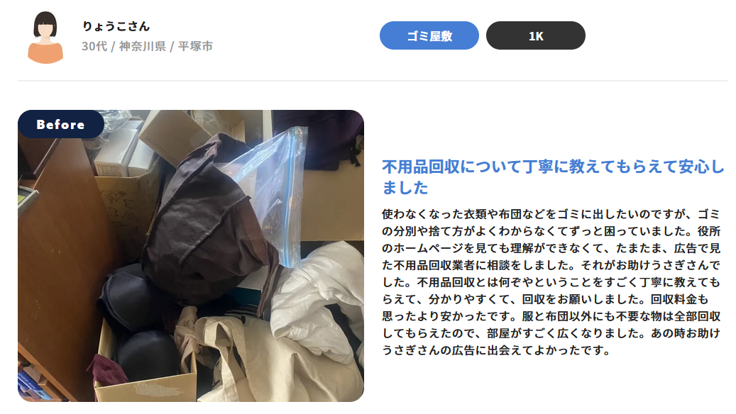 | 業者記事への関連記事リンク | https://otasukeusagi.jp/review-sodaigomi-kaishu-honpo/ |