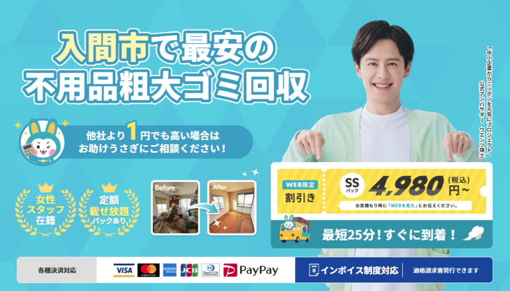 お助けうさぎの公式サイト「埼玉県入間市の不用品回収【お助けうさぎ】」も、ぜひ参考にしてください。