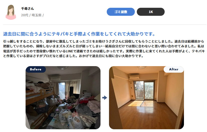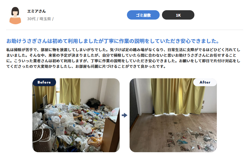 | 業者記事への関連記事リンク | https://otasukeusagi.jp/review-sodaigomi-kaishu-honpo/ |