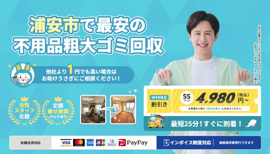 お助けうさぎの公式サイト「千葉県浦安市の不用品回収【お助けうさぎ】」も、ぜひ参考にしてください。