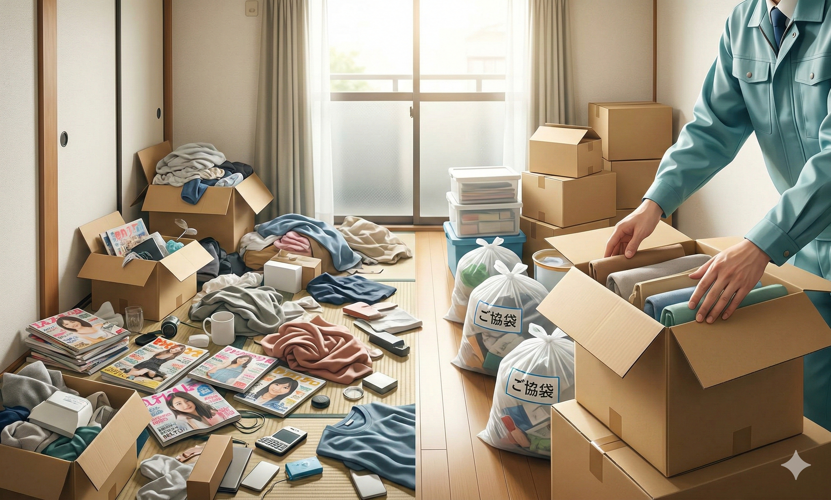 たとえば、処分に迷う物が多いと、第三者の視点が入ることで整理が進むことがあります。